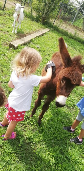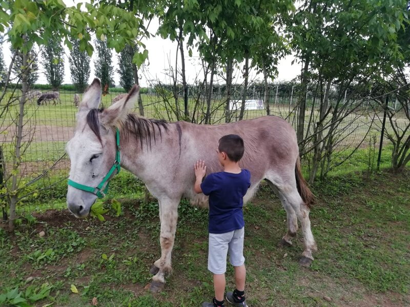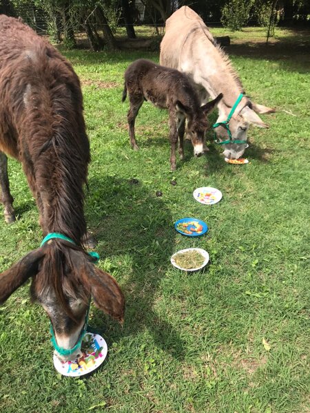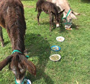 ...e così noi abbiamo preparato per loro una bella torta, e dopo carezze e qualche spazzolata... voilà il pranzo è servito!ps... quella bianca è Fiocco, la nostra capretta, pensava di riuscire a mimetizzarsi tra gli Asinelli...